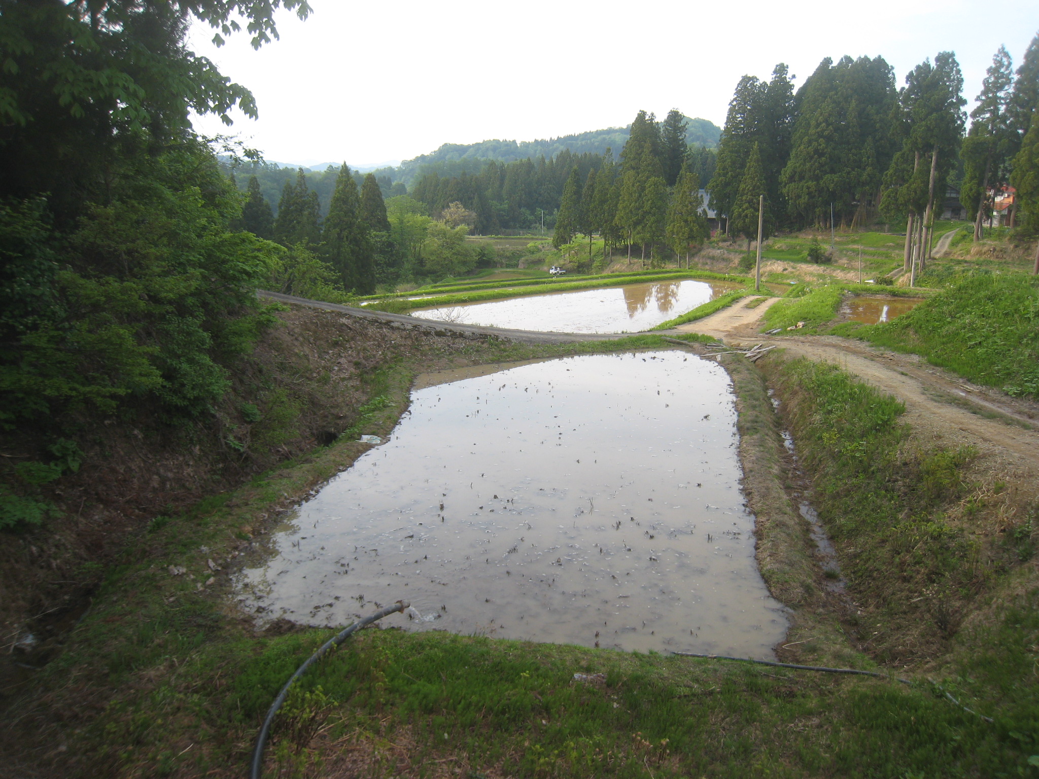 [1306] ⇒ 原画 2010/05/24 大 代掻き 例年になくしっかりしている畦 去年秋の畦塗り講習のときにずいぶん高くした畦が積雪で締まったのかしっかりしたきれいな畦になっていました |